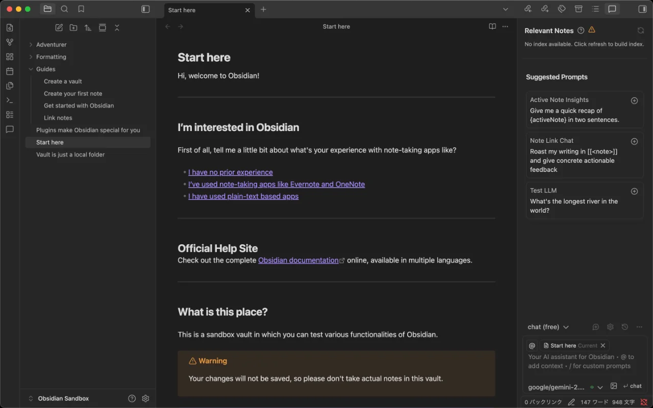 まとめると、コミュニティプラグインはLLMとObsidianを統合する機能を提供しており、モデル自体は各自契約する必要がある。活発に開発されているので、選択肢は多く機能は多岐にわたる。