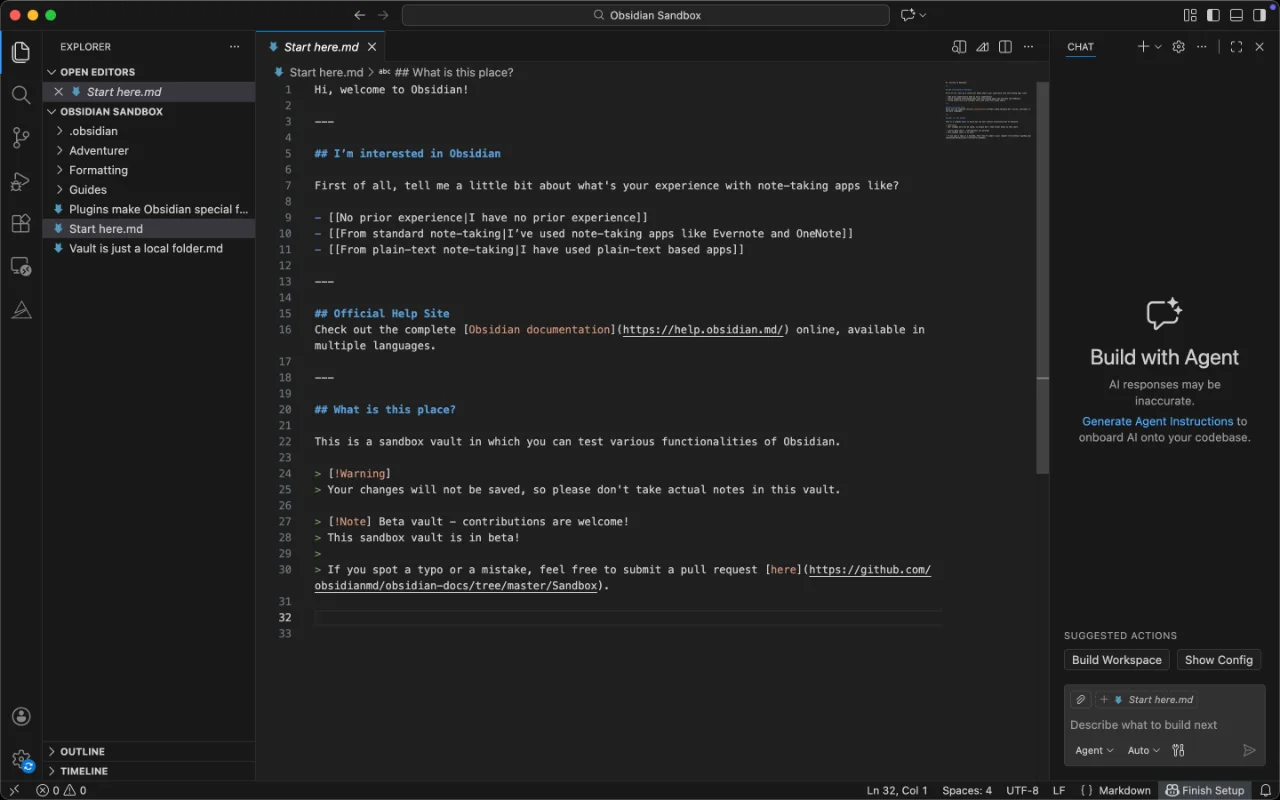 運用は至ってシンプルである。Obsidianで開いたファイルをIDEでも開く。多くの場合人力作業はObsidianの方が利用しやすいことが多いので、LLMを使用したいときにのみIDE経由で作業する。