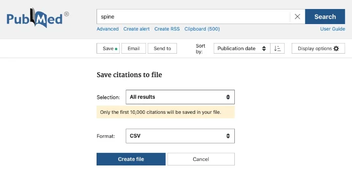 PubMedのサイトからは検索結果を出力することができる。これは簡単に行うことができるのだが、